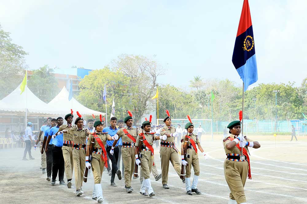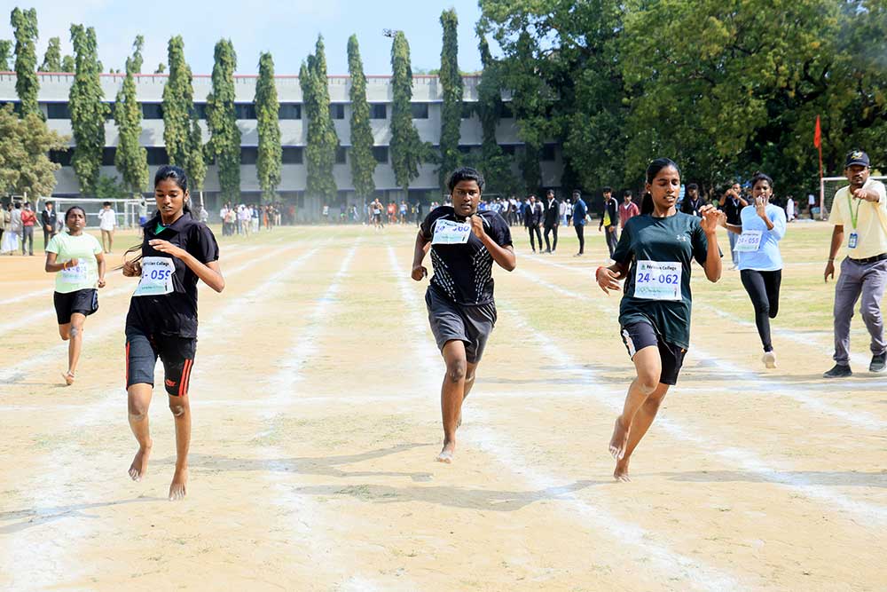 The 23rd Annual Sports Day of Patrician College of Arts and Science, Adyar, Chennai, held on Saturday, 3rd February 2024, marked a day of exuberance, sportsmanship, and celebration. The event commenced with the arrival of dignitaries, creating an atmosphere of anticipation and excitement. The ceremonial flag hoisting was a momentous occasion, with Mr. Murugesan R, Assistant Commissioner of J2 Adyar Police Station, Chennai, and Ms. Nivetha Jessica, Indian Motorcycle Champion and Founder of the Women’s Motorcycle Club, hoisting the Olympic Flag and College Flag, respectively.